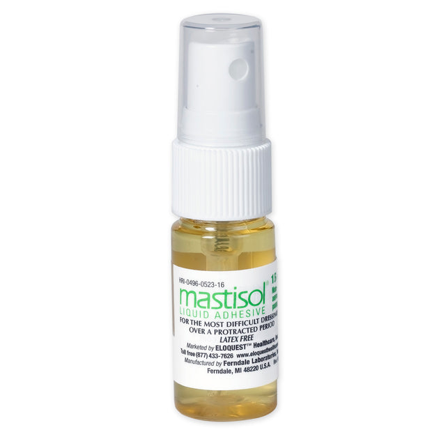 Mastisol® Liquid Adhesive is a clear, non-irritating, and non-water-soluble liquid adhesive that secures the most difficult dressings for an extended period of time. Mastisol® is 7 to 10 times stickier than Compound Tincture of Benzoin.